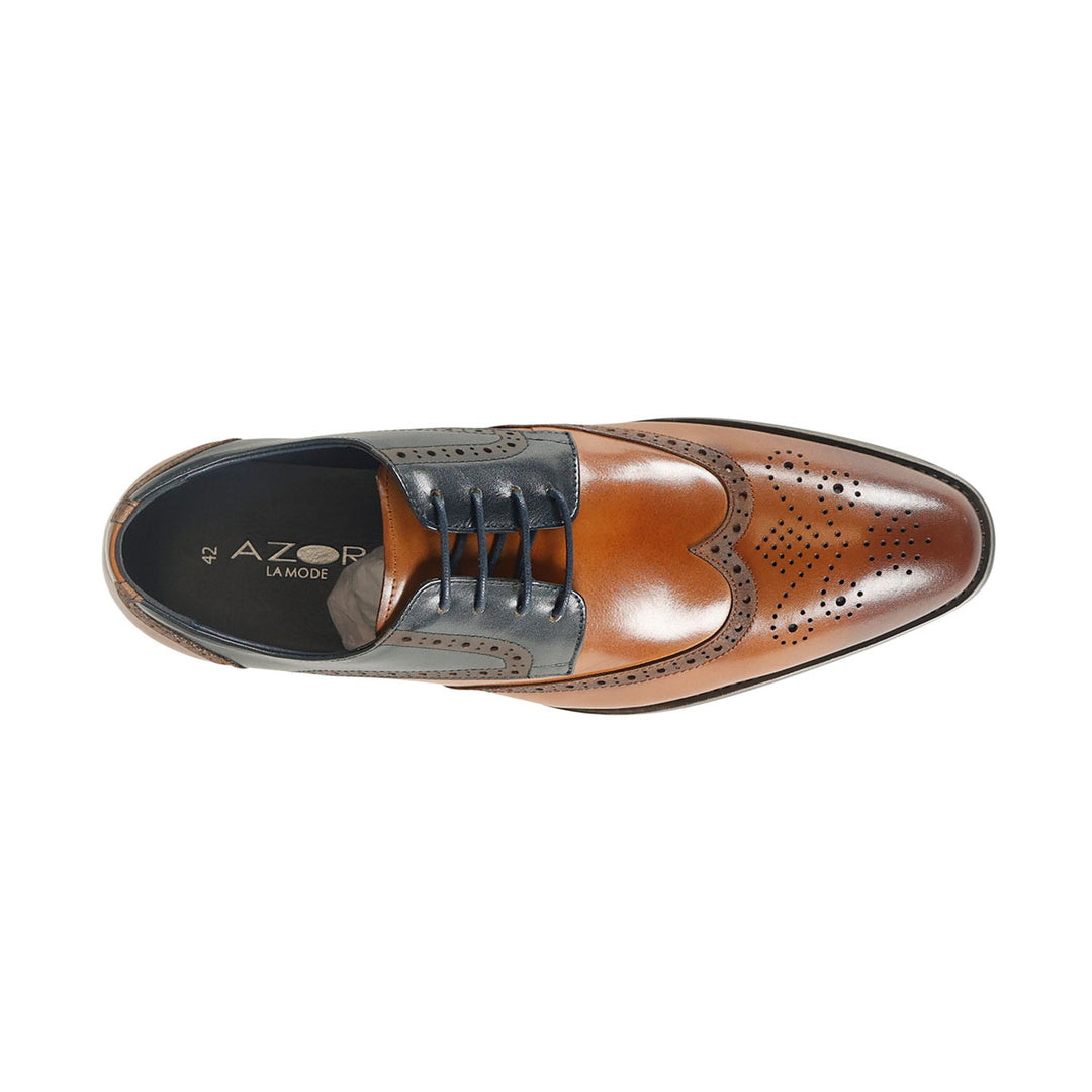 Azor ZM3825 Missori Tan Brown & Navy Blue Brogue Shoes - Baks Menswear Bournemouth